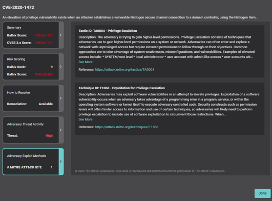Balbix helps address this principle by providing a comprehensive view of your IT environment (Know Thyself), including asset and vulnerability data from various sources, enabling collaboration and knowledge sharing across teams. Balbix also provides an automatic mapping of the common vulnerabilities and exposures (CVEs) and endpoint security controls to the MITRE ATT&CK Framework, which provides insights into the latest attack vectors and TTPs (Know Thy Enemy), empowering organizations to make informed decisions about vulnerability prioritization and remediation.