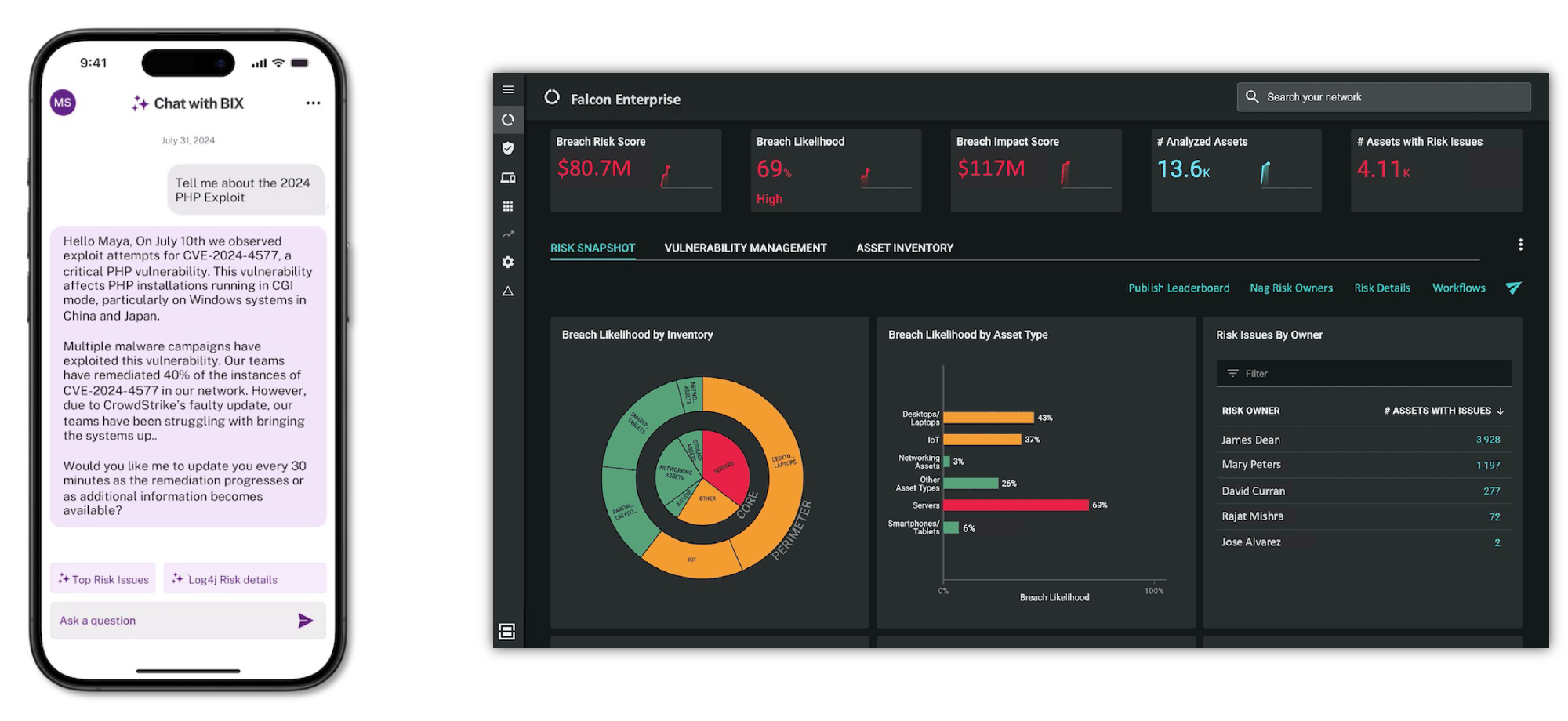 Native GenAI assistant: Built-in cybersecurity AI assistants can empower every key player in cybersecurity – including the CISO, CIO, VM teams, security operations, IT staff, and legal teams – with their own AI assistants. These assistants communicate using language appropriate for their roles, making it easier for each stakeholder to understand the cyber risk and how to reduce the organization’s attack surface.