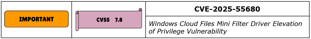 CVE-2025-55690 | Important | EoP | 7 | Less Likely |